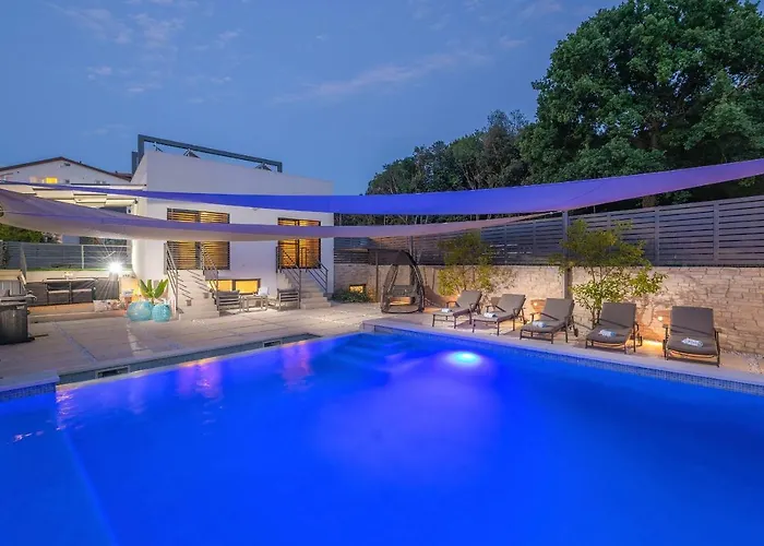 Dále je k dispozici mikrovlnná trouba, myčka nádobí a pračka. Do letiště Pula je možné dojet autem za 15 minut. K zajímavostem tohoto ubytování typu vila patří herna a herní místnost pro hosty s dětmi. Na místě je k dispozici vyhřívaný plavecký bazén.